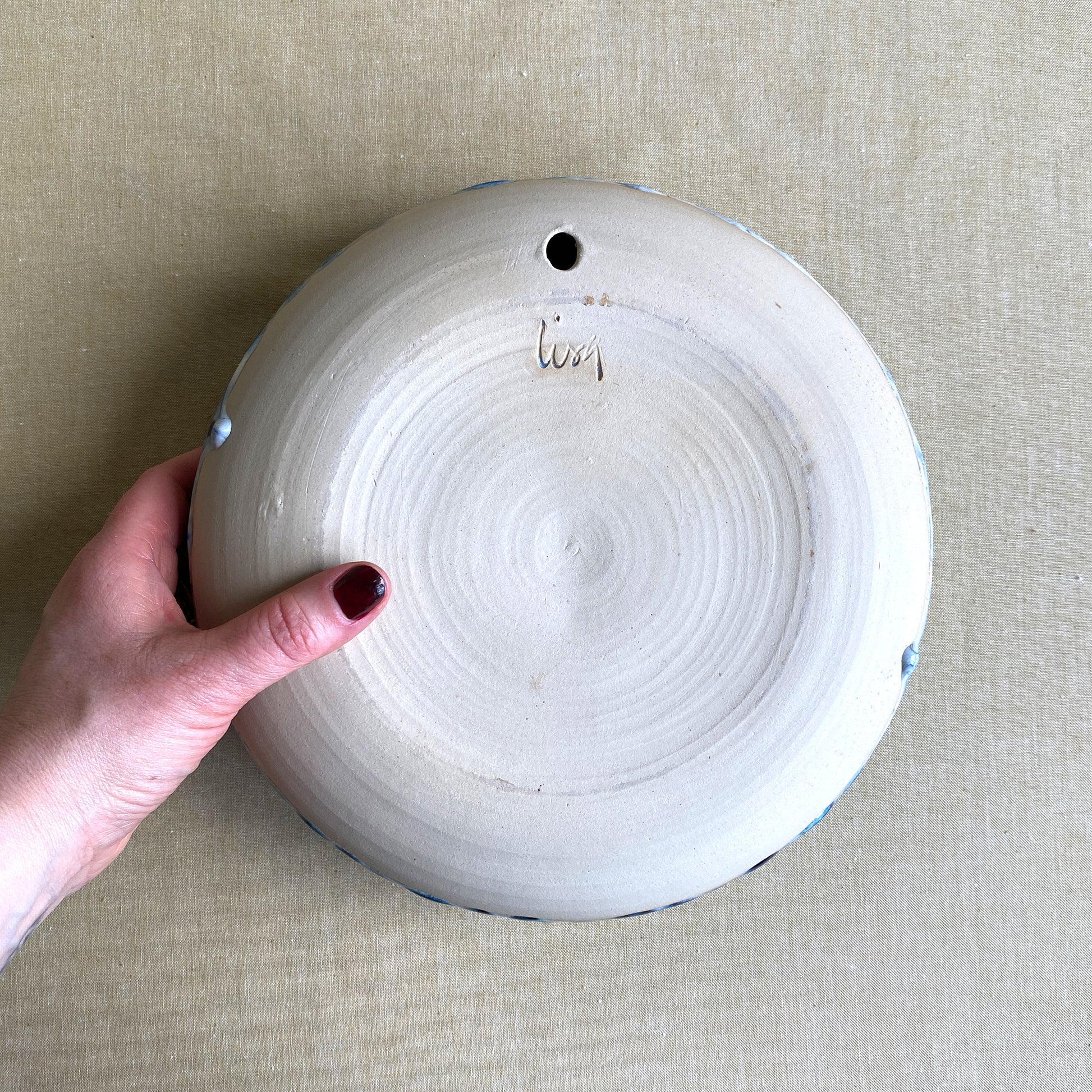 Den är drejad och ihålig inuti, vilket gör att den inte väger mer än 2 kg. Tack vare det integrerade upphängningshålet på baksidan kan den enkelt hängas upp som väggkonst – men är lika vacker att använda som en skål på bordet.