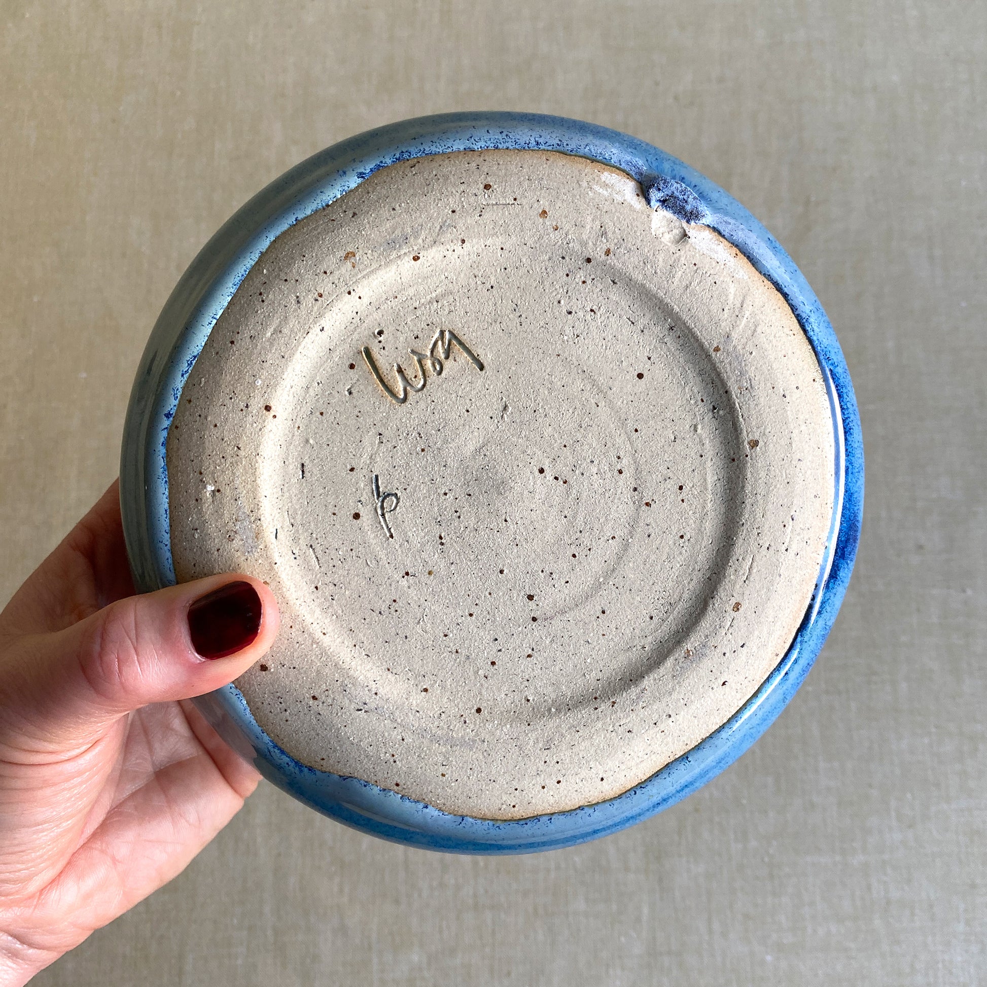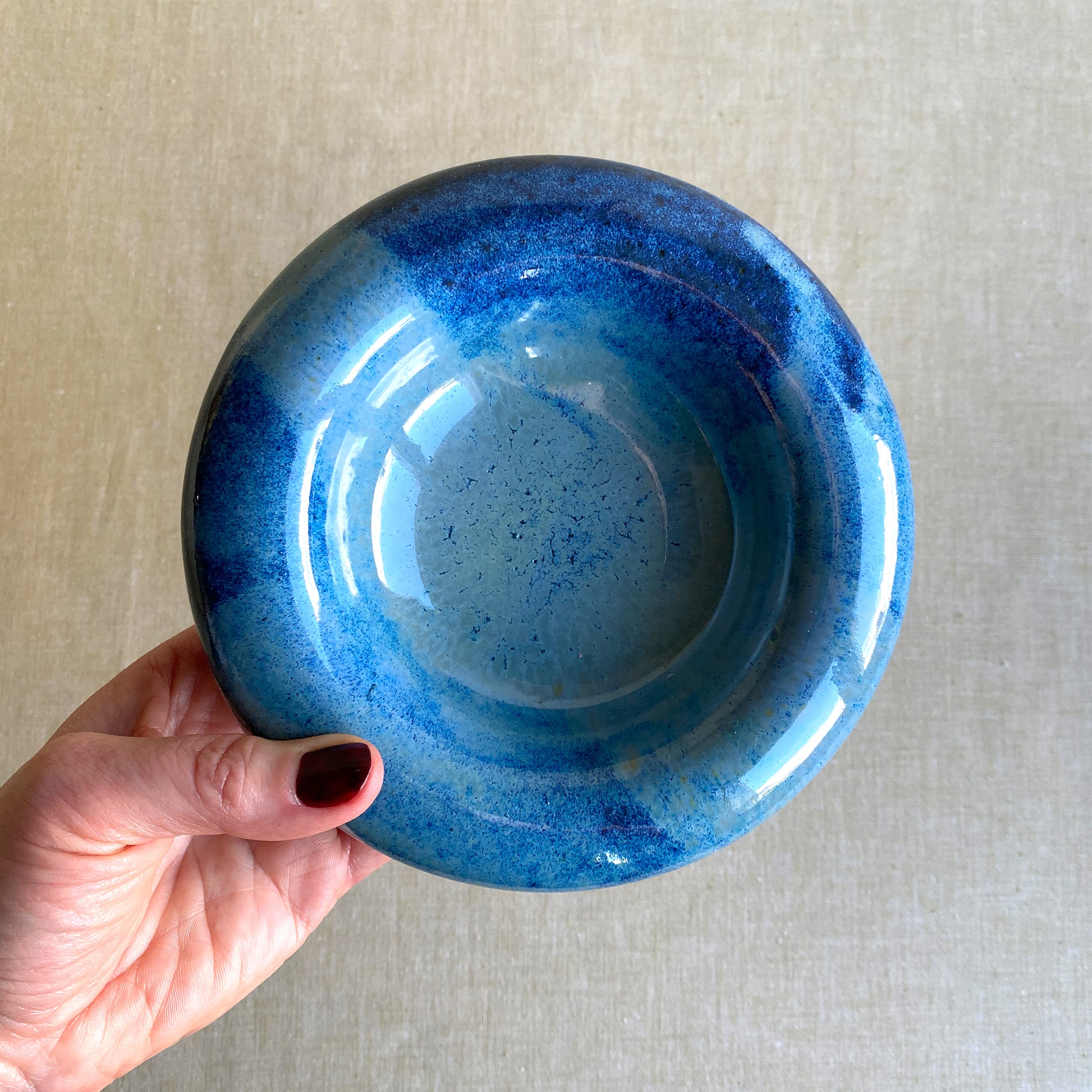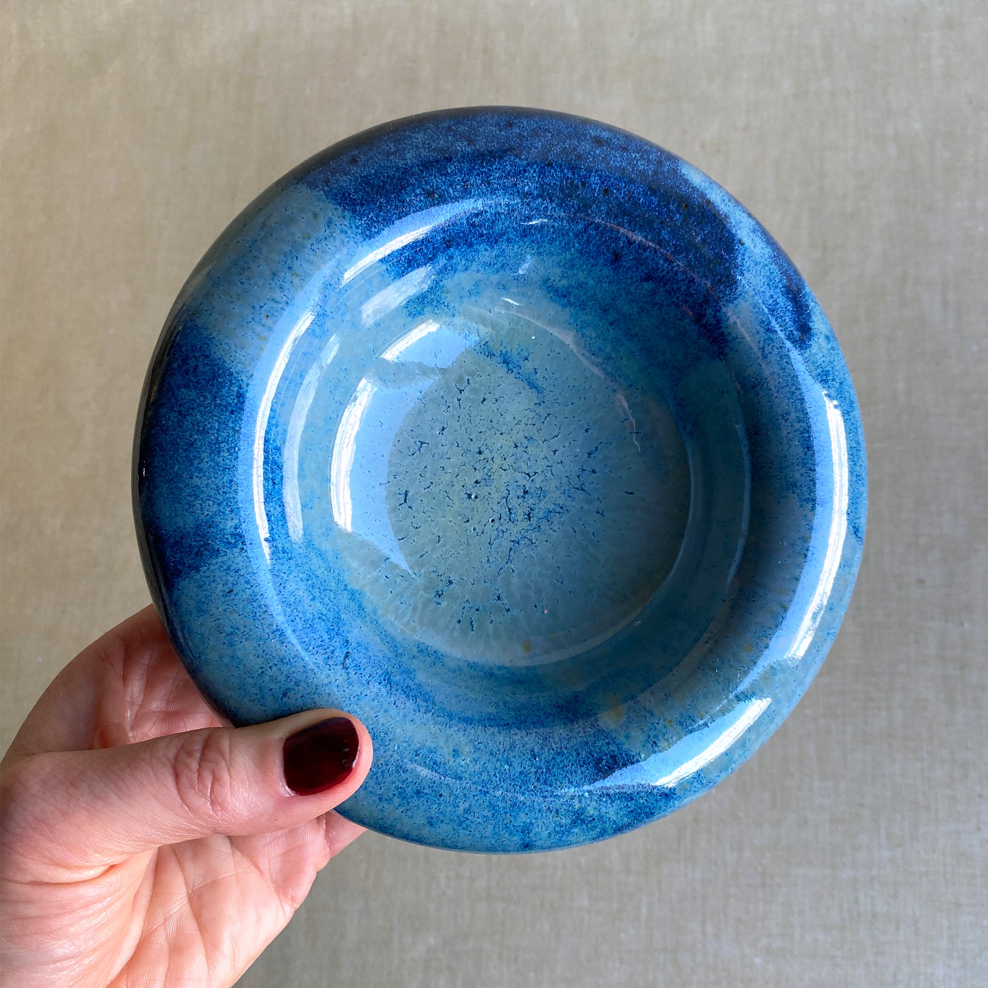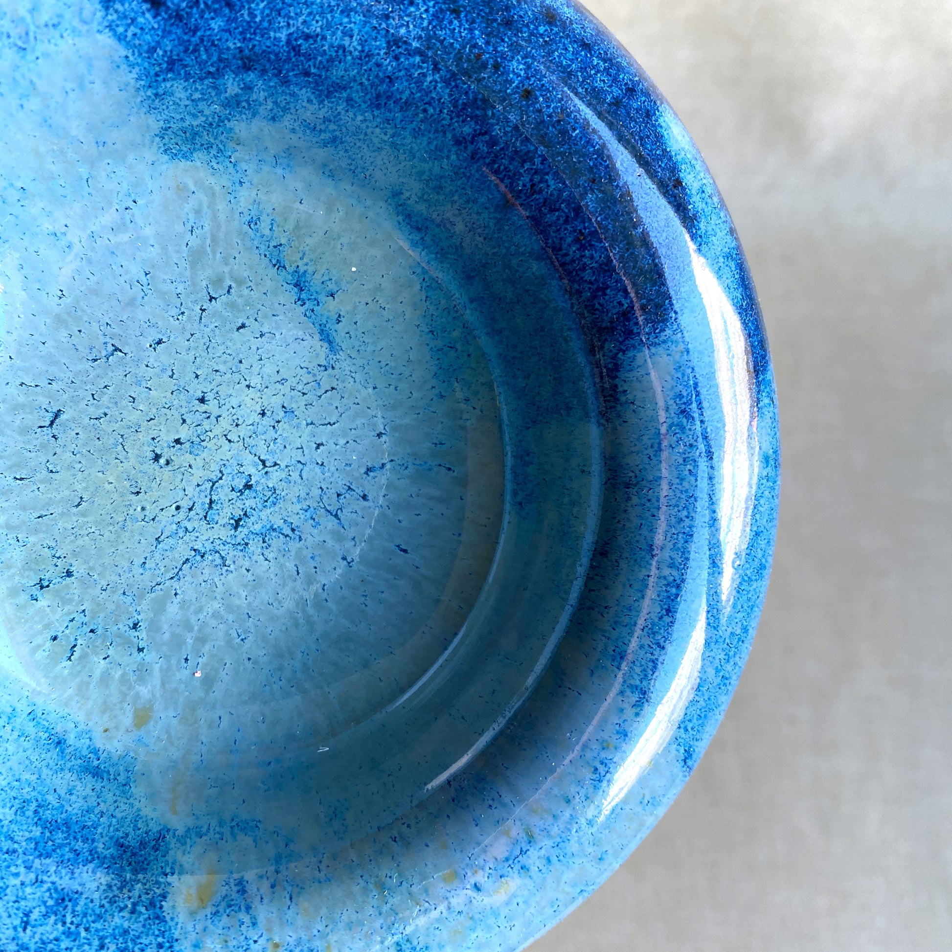 Wild Ocean är en handgjord keramikskål där lerans naturliga egenskaper tillsammans med två gröna glasyrer skapar en djup blå färg med subtila skiftningar.